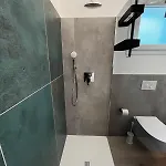 Die Villa in Stintino verfügt über ein Badezimmer mit einem Bidet, einer begehbaren Dusche und einer getrennten Toilette. Ein Haartrockner und Badelaken sorgen für zusätzlichen Komfort.
